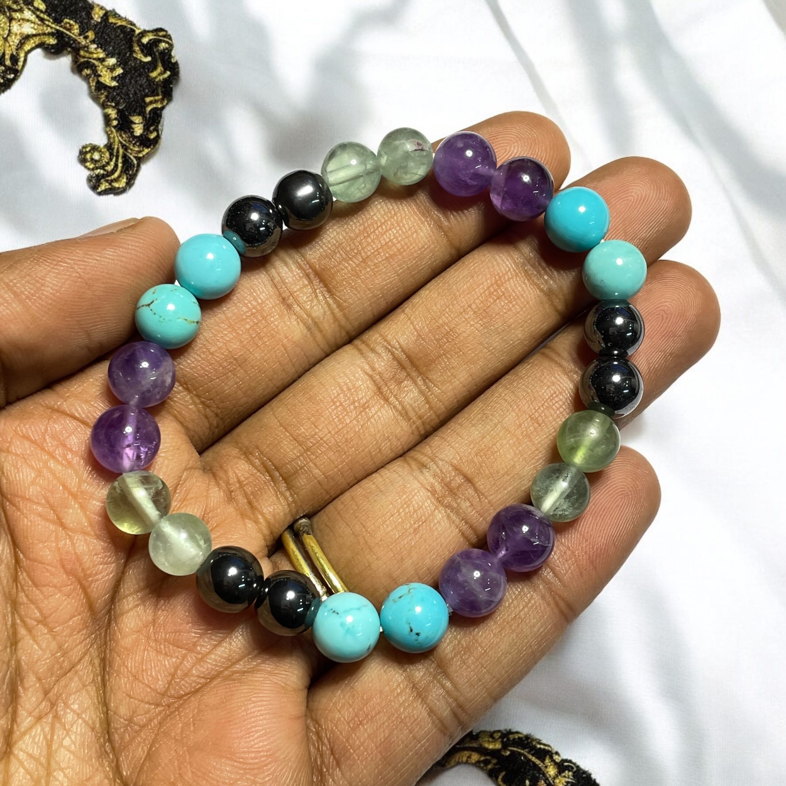 Experience natural relief and holistic support with our Arthritis Pain Relief (Advanced) Bracelet, thoughtfully handcrafted to help ease joint pain and inflammation. This wellness bracelet blends the powerful healing energies of Amethyst, Hematite Magnetic, Fluorite, and Turquoise—each chosen for their unique therapeutic benefits.