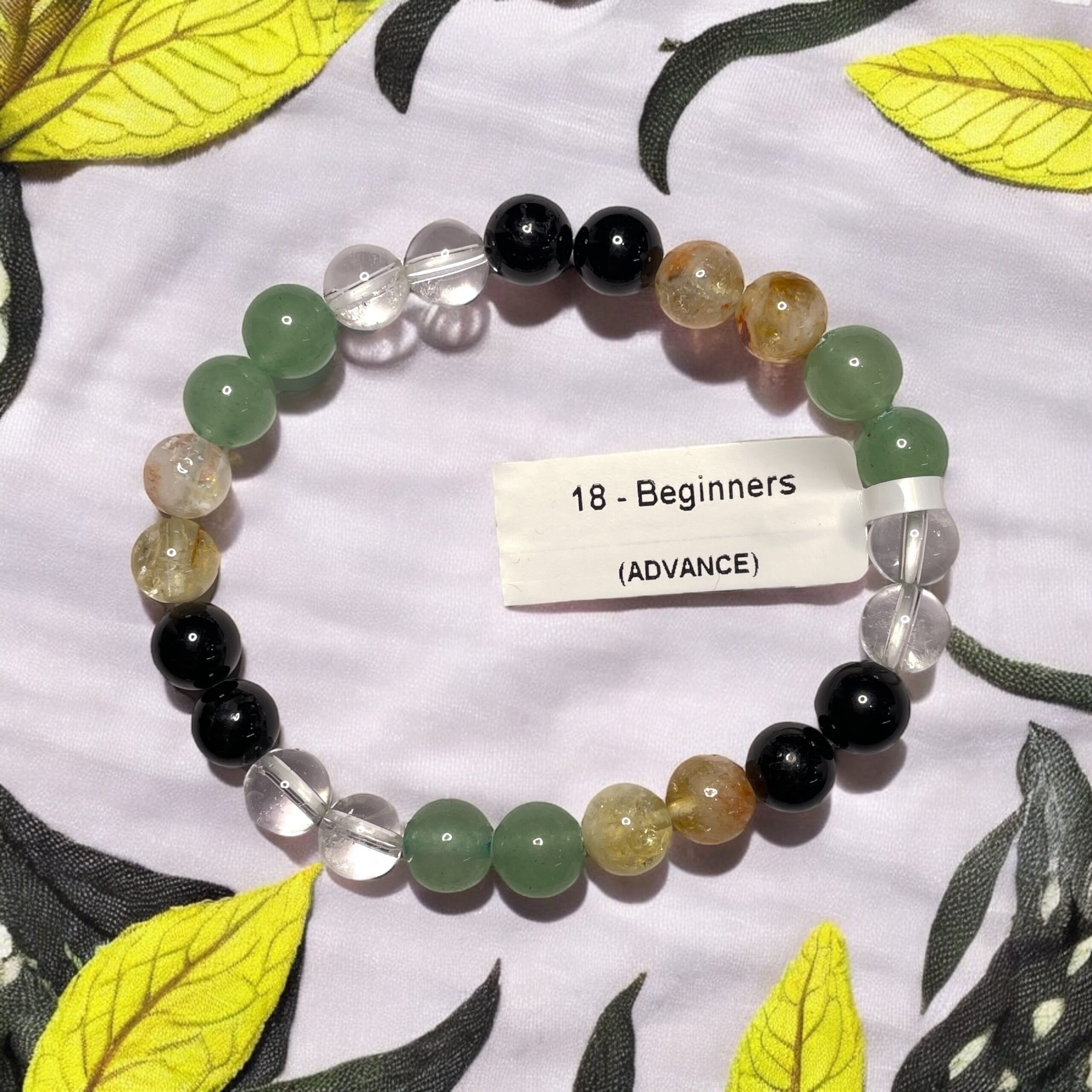 Our Beginners (Advanced) Bracelet is mindfully designed using a powerful combination of four healing crystals: Green Aventurine, Black Tourmaline, Clear Quartz, and Citrine. Each stone has been carefully chosen to provide unique support for emotional, spiritual, and energetic well-being.